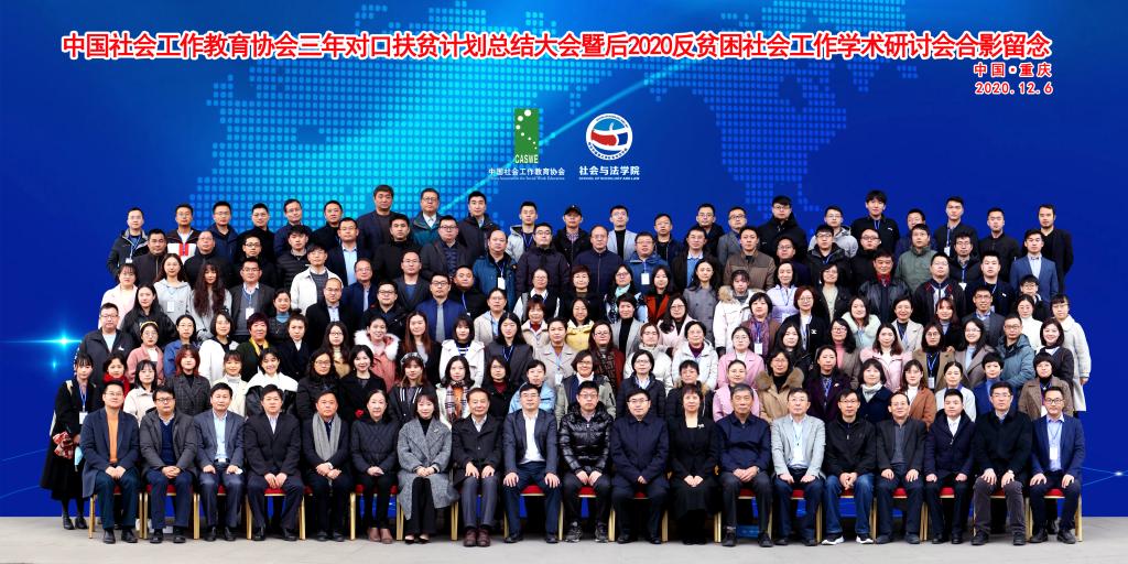 2020年12月6日,由中国社会工作教育协会、中国社会工作教育协会反贫困社会工作专业委员会主办,我校社会与法学院承办的中国社会工作教育协会三年对口扶贫计划总结大会暨后2020反贫困社会工作学术研讨会在重庆丽苑维景国际大酒店顺利举行。本次会议以“回顾与前瞻:脱贫攻坚与乡村振兴”为主题,旨在总结与反思中国社会工作教育协会百校对口扶贫计划实施三年以来取得的工作成效以及社会工作助力脱贫攻坚的实践经验,并探讨随着中国特色扶贫开发事业迈入治理相对贫困新阶段,社会工作如何进一步发挥专业优势,巩固拓展脱贫攻坚成果并助推乡村振兴战略。民政部慈善事业促进和社会工作司社会工作处处长王铮键、重庆市扶贫办副主任张倵瑃、重庆市民政局慈善事业促进和社会工作处副处长肖丹等嘉宾莅临开幕式现场。我校党委书记邹渝,中国社会工作教育协会副会长兼秘书长马凤芝,中国社会工作教育协会常务副会长关信平,中国社会工作教育协会副会长陈树强、王婴、庄勇、向德平,以及中国社会工作教育协会原副会长钱宁,反贫困社会工作专业委员会主要负责人、中国社会工作学会副会长李迎生,华东师范大学社会发展学院院长文军及来自全国高校、科研院所、学术期刊杂志社的师生、研究人员及编辑,共计200余人参加了会议。