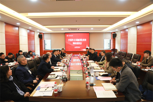 3月3日上午,我校在图书馆505会议室举办中国外文局翻译院来校调研座谈会。中国外文局翻译院党总支书记王继雨、副院长李伟勇,重庆市政府外事办公室二级巡视员马勇,重庆市外事翻译中心副主任李佳颖,字水中学党委书记王毅,我校党委书记邹渝、副校长祝朝伟,副校长王仁强等领导出席会议。会议由祝朝伟主持。