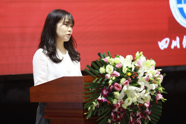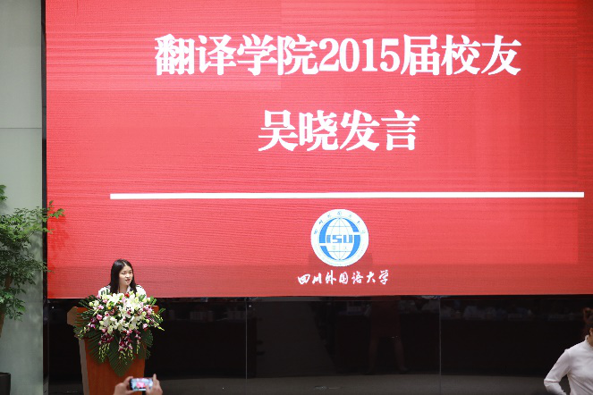 毕业生代表重庆国际传播中心社交媒体主编吴晓发言
