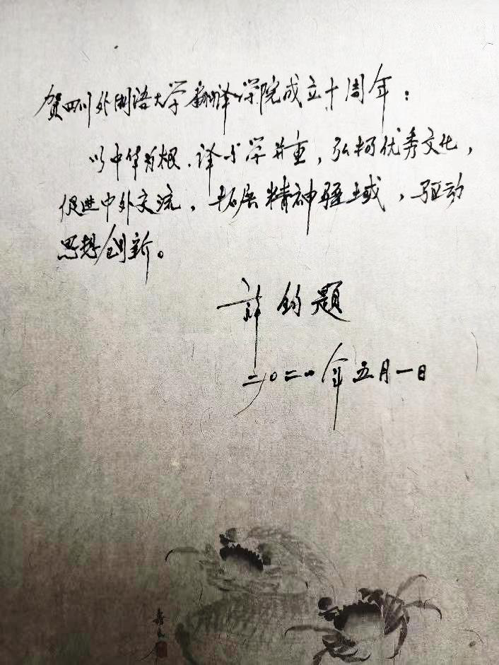 在翻译学院成立十周年之际,中国外文局原副局长兼总编辑黄友义发来贺信。在贺信中,他高度肯定了翻译学院在讲好中国故事、构建中国对外话语研究体系中所做的贡献。中华译学馆馆长、浙江大学文科资深教授许钧发来祝福视频,祝翻译学院越办越好,再创辉煌。中国英汉语比较研究会会长罗选民和北京外国语大学博士生导师、翻译文化研究会会长王克非等知名学者,以及北京外国语大学高翻学院、上海外国语大学翻译研究院、广东外语外贸大学高翻学院、西安外国语大学高翻学院、天津外国语大学高翻学院、大连外国语大学高翻学院、重庆大学外国语学院等兄弟院校也纷纷发来贺信。