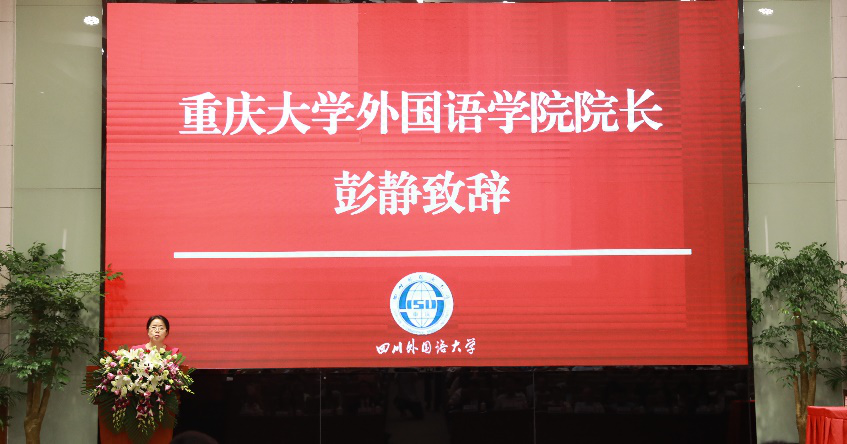 重庆大学外国语学院院长彭静代表重庆市各外国语学院,向翻译学院的10周年送上了祝福。她向川外翻译人的担当和贡献表示衷心的感谢,并提议携手推进西部外语教育发展。