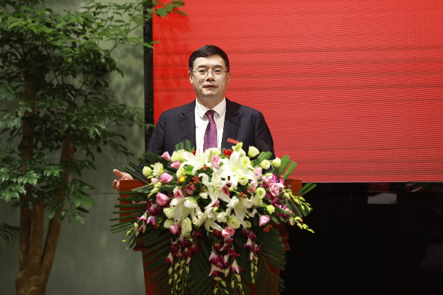 上午十点,庆祝大会正式开始。现场播放院庆十周年纪录片《我们的十年》,全面立体地展示了翻译学院在建院十周年的学科专业发展历程。校长董洪川代表学校致辞,他高度肯定了翻译学院建院十年取得的优异成绩,并代表学校希望翻译学院以院庆为契机,秉承优良的教学和学风、不断开拓进取,力争各项事业再上一个新台阶。