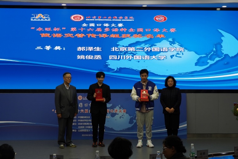 2023年10月21日,“永旺杯”第十六届多语种全国口译大赛决赛如期在北京第二外国语学院举行。俄语学院2020级本科生姚俊丞同学凭借极好的语音面貌、精湛的口译专业素养以及出色的个人风格,在国内外81所高校的178名选手中脱颖而出,闯入决赛阶段并荣获俄语交替传译组二等奖。俄语学院高度重视此次比赛,提前数月开始筹备比赛相关事宜,遴选专业过硬、指导经验丰富的付景老师牵头,与李俊瑛老师一同悉心指导,确保参赛选手口语表达流畅、译文组织严密、口译质量得到保障。