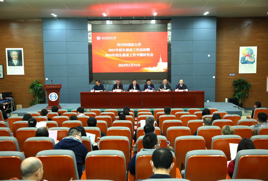 3月31日上午,四川外国语大学2021年招生就业工作总结暨2022年招生就业工作专题研究会在歌乐楼A栋报告厅召开。全体在家校领导、相关职能部门负责人、各学院党政主要负责人、分管学生工作的党总支副书记以及2021届和2022届毕业年级辅导员参加会议。会议由副校长李彦主持。