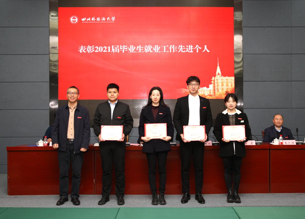 会上,副校长李彦宣读《四川外国语大学关于表彰2021届毕业生就业工作先进集体和先进个人的决定》,并由在家校领导为先进集体和先进个人颁奖。