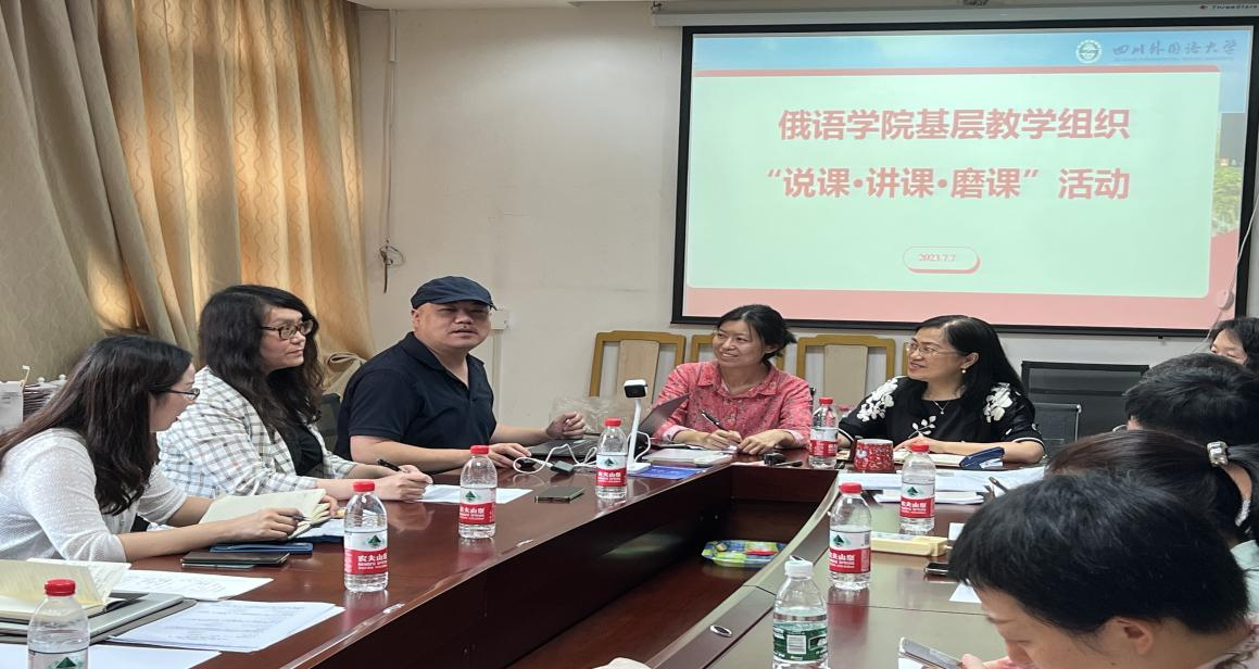 2023年07月07日下午,俄语学院各基层教学组织开展了教师“说课讲课磨课”活动,活动由学院院长、党总支书记徐曼琳同志主持。此次活动围绕立德树人根本任务,以优化教学设计,彰显“学生中心”和合作教学为目标展开,特别是对“三进”精神如何融入教学以及信息技术如何支持教学进行了重点研讨。