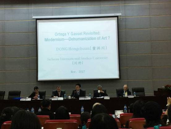 我校英美文学博士生导师、全国英国文学学会副会长、《外国语文》主编董洪川教授以《现代主义:“非人化的艺术”?——西方现代主义文学再审视》为题作了大会主旨发言,对长期以来西方现代主义的定论性评价提出质疑。他从西班牙哲学家、文学批评家Ortega Y Gasset提出现代主义为“非人化”的原文本着手,考察原作者提出这一判断的学理依据,并结合西方马克思主义创始人卢卡奇对西方现代文学的相关评价,梳理西方学界对这一重要评价的接受与认同。董教授从“现代主义与文学使命”、“现代主义与传统”、“现代主义与‘活过’的现实”等方面详尽论述了上述命题的不合理性,并提出自己独立的见解。