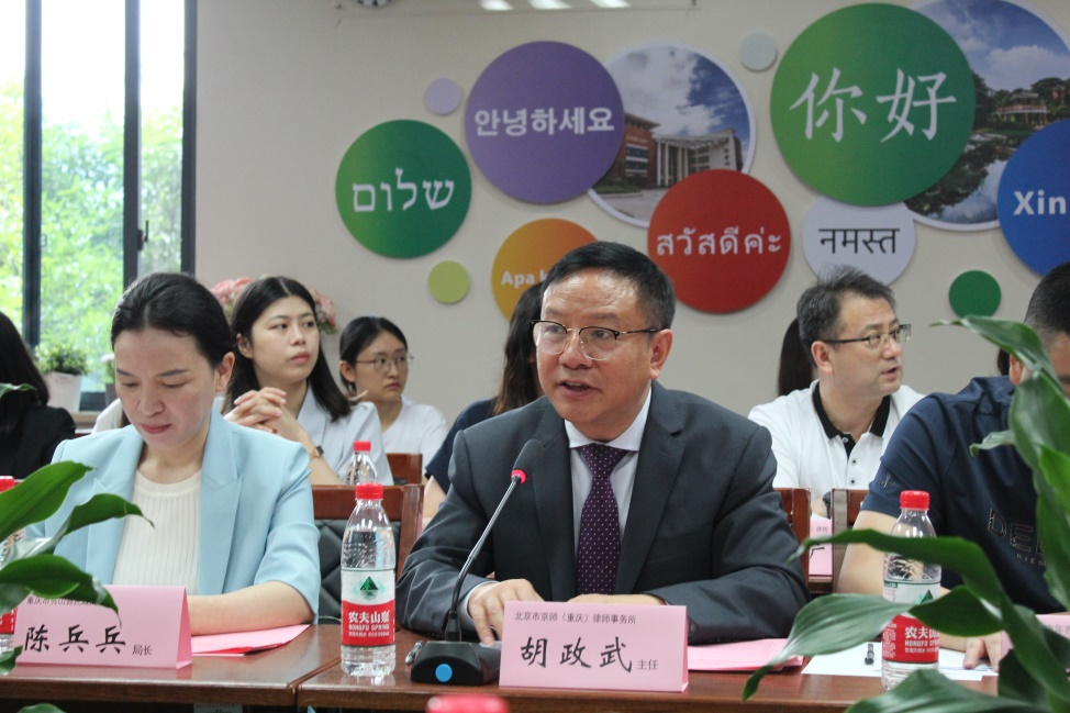 签约合作单位代表,北京市京师(重庆)律师事务所主任胡政武律师在发言中表示,川外的办学特色同京师律所的办所理念高度一致,希望实现学校与律所的双向互补、强强联合。京师律所将从共建涉外法治人才联合培养基地、共建法治教育基地、党建共建结对等方面与学院加强合作,共同培养卓越涉外法治人才,共同提升重庆教育对外开放水平。