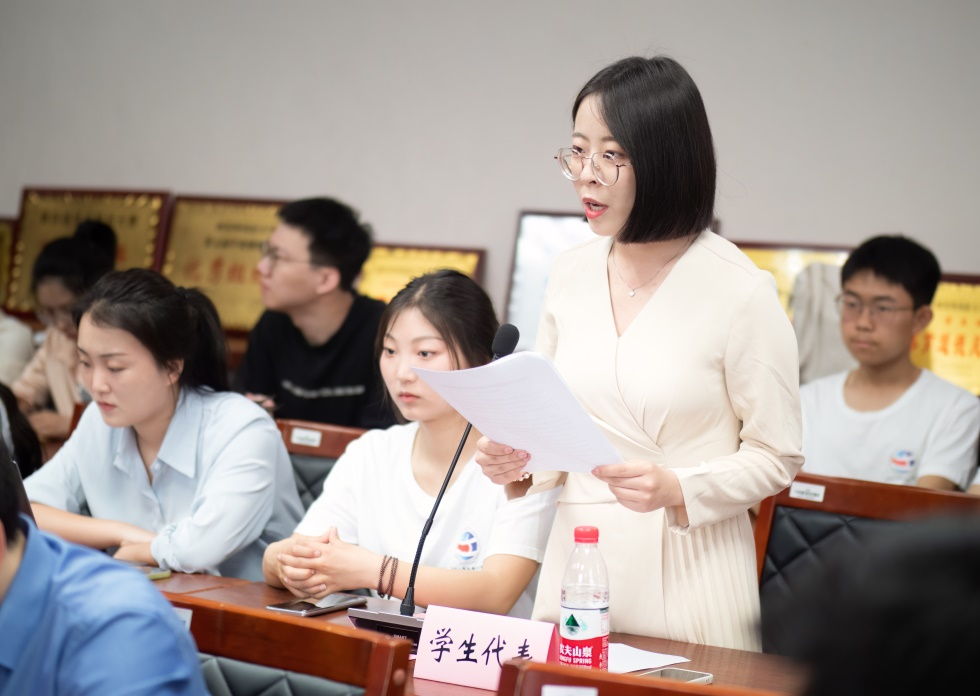 学院学生代表杜舸菲在发言中分享了自身的实践经历与收获。她谈到此次共建涉外法治人才联合培养基地和实践教学基地将有助于打破高校与实践的壁垒,引进校外优质资源,联合培养高素质人才。希望同学们借此机会不断打磨能力,学习真本事,练就真本领。