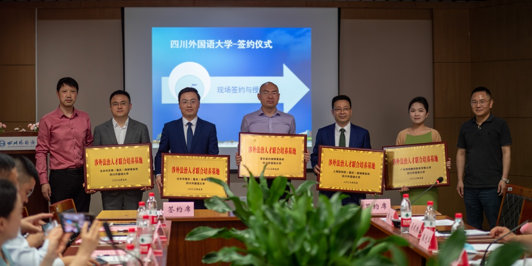 2023年5月15日上午,国际法学与社会学院涉外法治人才联合培养基地、实践教学基地签约暨授牌仪式在西区立德楼C216会议室举行。学校王仁强副校长、重庆市秀山县民政局、重庆百康年养老发展有限公司、重庆上游新闻传媒有限公司、北京市京师(重庆)律师事务所、重庆市农业科学院农业经济与乡村发展研究院、北京市隆安(重庆)律师事务所、上海段和段(重庆)律师事务所、重庆鉴识律师事务所、广州博郎翻译服务有限公司、华润万象生活物业重庆公司、龙湖物业服务集团有限公司,以及学校学生处处长崔光军、招生就业处处长申安桂、教务处副处长张庆、科研处副处长马武林、国际法学与社会学院班子成员、教师代表和学生代表等出席仪式。会议由学院党总支书记陈功主持。
