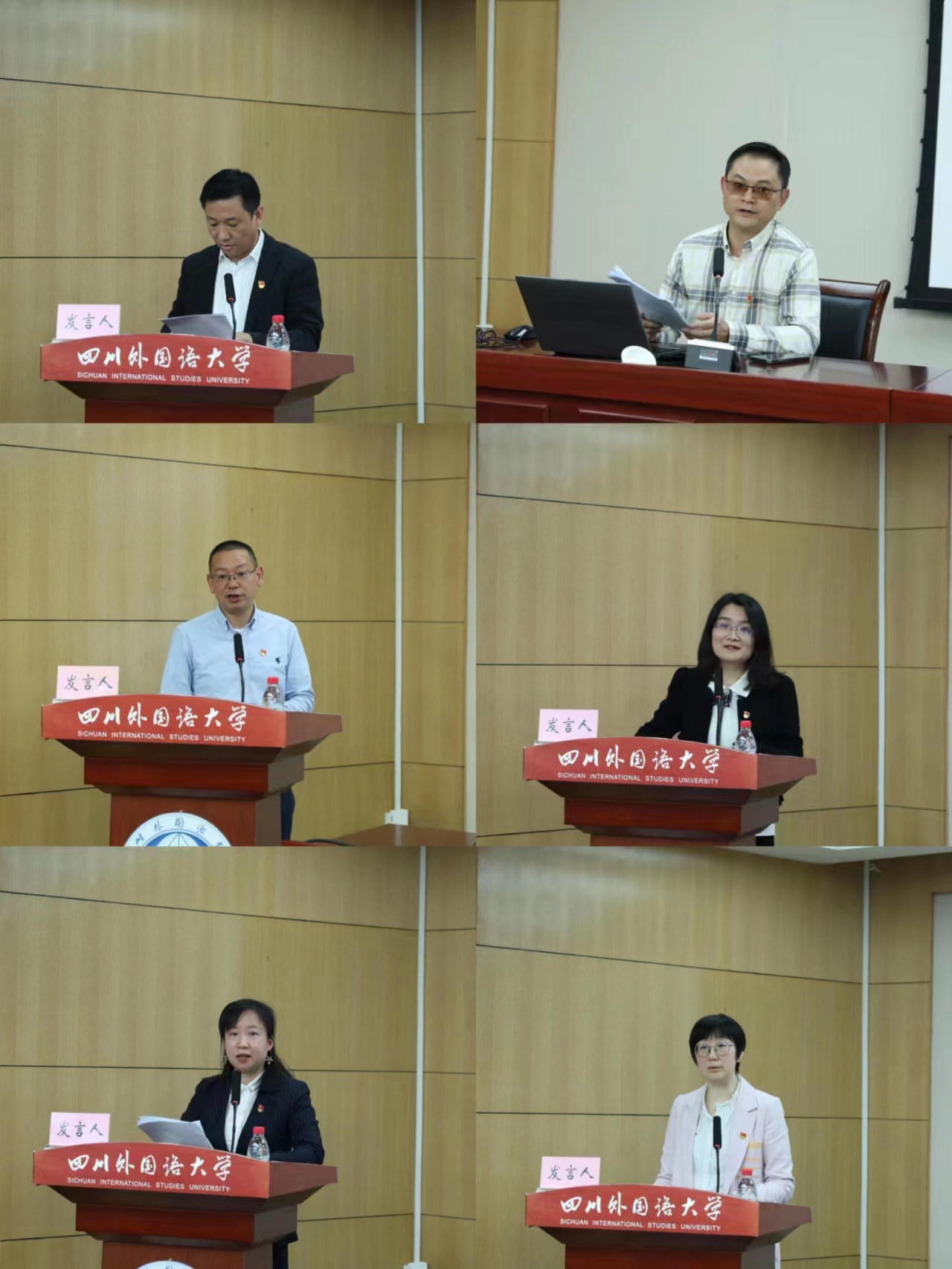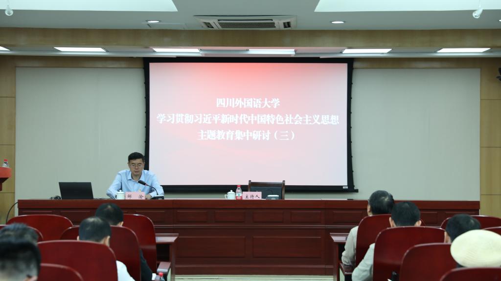 随后,商务英语学院党总支书记常慧明,国际法学与社会学院党总支书记陈功,马克思主义学院副院长黄科,四川外国语大学附属外国语学校副校长、四川外国语大学重庆科学城中学校长(兼)陈炜,纪检监察室副主任侯丽娟,中国语言文化学院党总支副书记李铮分别围绕“党建统领,双红传承,三全育人,奋力打造新时代‘红岩先锋’变革型组织”“深入推进全面从严治党,奋力打造新时代‘红岩先锋’变革型组织”“深刻理解‘红岩先锋’变革型组织的丰富内涵、做到思政课程和课程思政同向同行” “围绕学校特色优势,做好智慧校园建设”“加强新时代廉洁文化建设,一体推进‘三不腐’”“党建引领,文化铸魂——打造新时代‘红岩先锋’变革型组织”的主题作了交流发言。大家表示,要聚力打造新时代“红岩先锋”变革型组织,在学校第三次创业新征程上奋发有为,用实实在在的工作实绩检验主题教育成效。