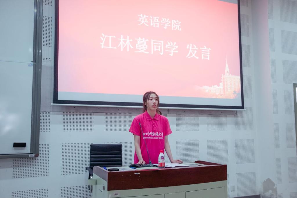 学校第九届研究生支教团成员、英语学院的江林蔓同学作为学生代表发言,她谈到了新时代大学生对劳动教育的深刻理解,和大家分享了参与劳动实践的所感所获,她和自己的同学一起走乡镇、入农村、进校园,开展实地考察、问卷调查、座谈讨论、实践教学,认为要将劳动教育带到服务地,帮助学生树立正确的劳动观念,引导更多青少年以更加自信、平和的态度和更加包容、开放的理念正确认识世界和中国发展大势。