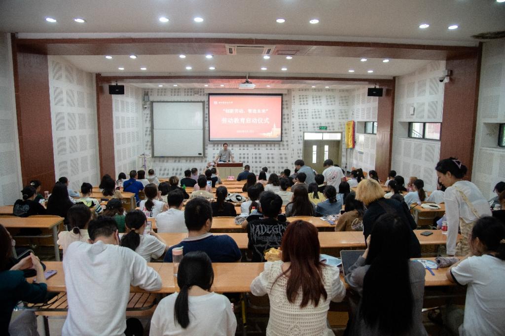 在启动仪式中,祝朝伟副校长从三个方面谈到对劳动的认识,一是劳动最光荣。他以自己个人的劳动经历说明了劳动可以让人养成坚韧和执着的品格,可以锻炼强健的体魄,可以引发内心的思考,是改变人们生存状况的内驱动力,可以帮助人们更好地理解社会,理解他人,理解自己,形成正确的人生观、价值观和世界观,为未来的发展打下坚实的基础,劳动可以培养坚忍不拔、团队协作、解决问题、尊重他人的精神,可以培养人们从平凡的岗位做出不平凡业绩的品质。二是劳动教育是人才培养目标的重要组成部分。作为外国语大学,其目标是要培养具有国际视野、家国情怀、创新精神、复合融通的国际人才,培养德智体美劳五育并举全面发展的人才,劳动教育是其中非常重要的组成部分,可以培养学生独立生活的能力,掌握相关的劳动技能,为未来的职业打下良好的基础。学生在劳动教育中要深刻认识到,对劳动的热爱就是对未来事业的热爱,劳动本身就是所有事业的起点。三是号召大家学习劳动模范,积极地参加劳动。要学习劳模对事业的热爱,对职业的坚守和注重细节成就自我的劳动工匠精神。