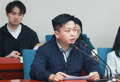 新进教师代表唐海东结合自身经历,分享了自己大学求学时与川外的故事。同时,唐老师提出,要成为一名合格的高校教师,要讲好与川外的故事,应该正确处理好教学与科研、教师与学生、专业教育与德育三对关系,与在场的老师共勉。