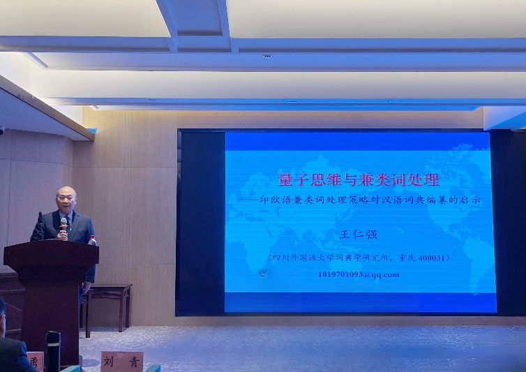副校长、词典学研究所所长王仁强教授应邀参会,并以“量子思维与兼类词处理——印欧语兼类词处理策略对汉语词典编纂的启示”为题在学术论坛上作大会报告。他认为,词类问题是一个千年谜题,词类研究长期受制于牛顿思维的束缚,在本体论、逻辑、认识论和价值论上都存在较大缺陷。他指出,破解词类谜题,亟需超越牛顿思维、拥抱量子思维,实现从学科研究范式向超学科研究范式的转向。基于量子思维和超学科研究的方法论,他建构了双层词类范畴化理论,并基于自建的大型权威词典词类标注数据库,对4种现代印欧语中概括词的词类叠加态(即兼类词)进行了调查。调查表明,现代英语、意大利语、法语和俄语等印欧语都不乏兼类词。他认为,兼类现象是人类语言的共性,传统上认为印欧语缺乏兼类词的论断并不成立,汉语的语法多功能现象应该更为突出,汉语/汉外词典长期奉行的兼类词要少的“简约原则”不仅在理论上行不通,而且在实践上也不可行。报告引起与会专家的强烈共鸣。