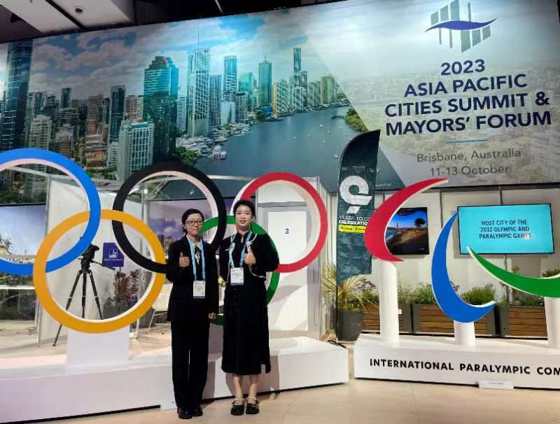 杨雪滢(右)、周淑华(左)在亚太城市峰会暨市长论坛现场合影