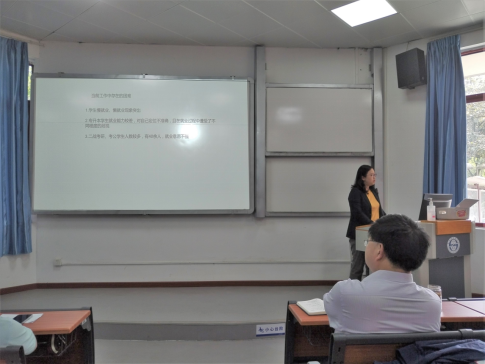学院2022届毕业生辅导员谢贤芳、王晨老师分别具体介绍了所带学生当前的就业情况。王晨老师介绍了审计学、物流管理、人力资源管理、旅游管理专业当前未落实毕业去向的毕业生分别存在的实际择业、就业困难。谢贤芳老师则着重强调了专升本毕业班存在的学业困难和就业形势,对考研考公二战同学的心理辅导和职业引导,并特别介绍了“西部计划”、“三支一扶”等国家基层就业项目。谢老师向毕业论文指导老师们分享了就业指导技巧和有效就业材料类型。
