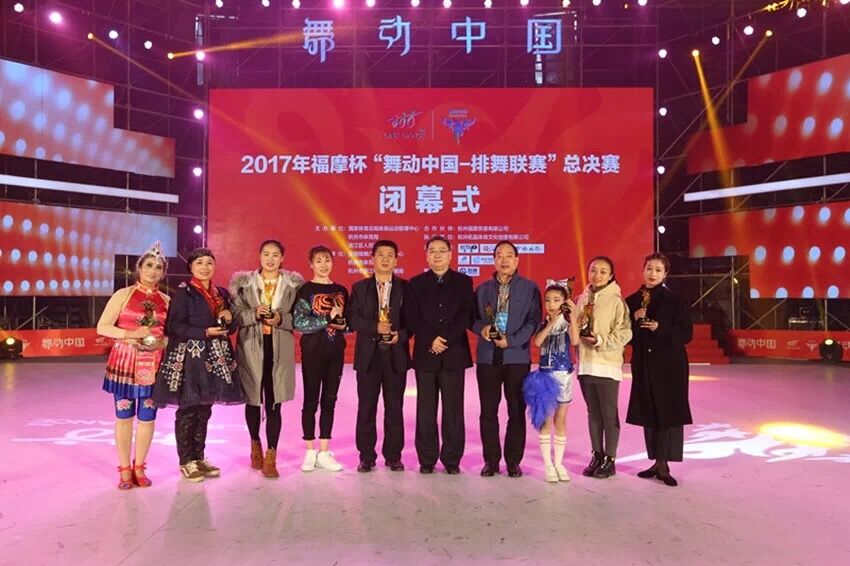 11月27日上午9点,由国家体育总局体操运动管理中心、杭州市体育局、杭州市滨江区人民政府主办,全国排舞广场舞推广中心承办的2017年福摩杯“舞动中国-排舞联赛”总决赛在杭州市滨江体育馆顺利闭幕。本次大赛历时3天,吸引了来自全国42个城市103支队伍1500余名运动员,按年龄分为幼儿组、小学组、中学组、高校组、青年组、中年组、常青组等10个组别;按人数分为单人、大集体、小集体;按项目分为原创、采风、规定、自选、串烧等五个项目,其中单人和串烧又分为初、中、高三个级别。