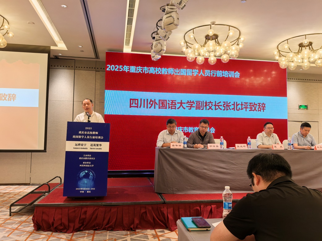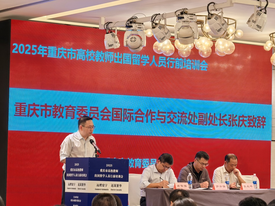 为助力重庆市建设高水平教育对外开放体系,8月26日至29日,由重庆市教育委员会主办、我校国际学院(出国培训部)承办的2025年重庆市高校教师出国留学人员行前培训成功举行。来自重庆大学、西南大学、重庆医科大学、重庆医药高等专科学校、重庆城市职业学院和我校等重庆市35所高校的150名出国留学人员参加培训。我校副校长张北坪、重庆市教育委员会国际合作与交流处副处长张庆、安徽师范大学法学院院长郭泽强等出席开班典礼。培训以“远骋寰宇 近筑繁华”为主题,旨在提升参培学员的跨文化适应能力、国际学术交流能力及海外风险应对能力,实现平安留学。