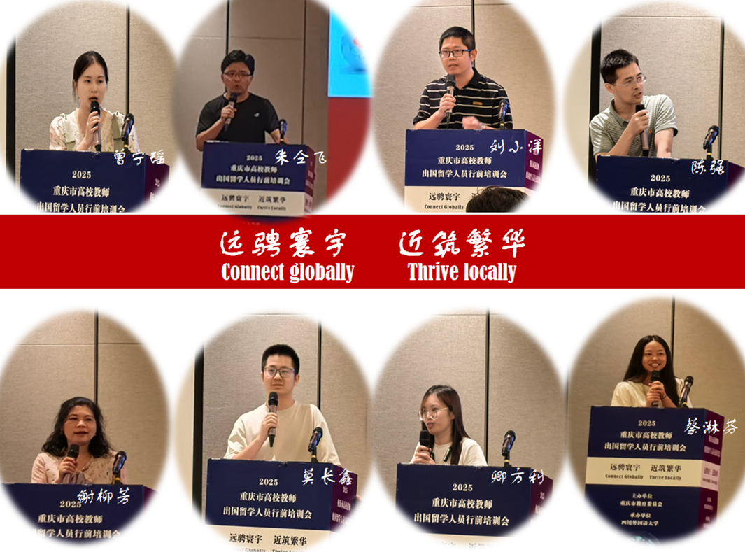 培训总结会上,八位参培学员代表——曾宁瑶(重庆艺术工程职业学院)、朱仝飞(重庆医药高等专科学校)、刘小洋(重庆理工大学)、陈强(重庆大学)、谢柳芳(西南政法大学)、莫长鑫(重庆师范大学)、卿方利(重庆城市职业学院)与蔡淋芬(重庆商务职业学院)——踊跃发言,分享培训收获以及留学期待。国际学院(出国培训部)副院长张勇勉励全体学员以语言为桥梁、以文化为媒介,在海外访学期间充分展现中国学者的学术素养与文化传播担当。