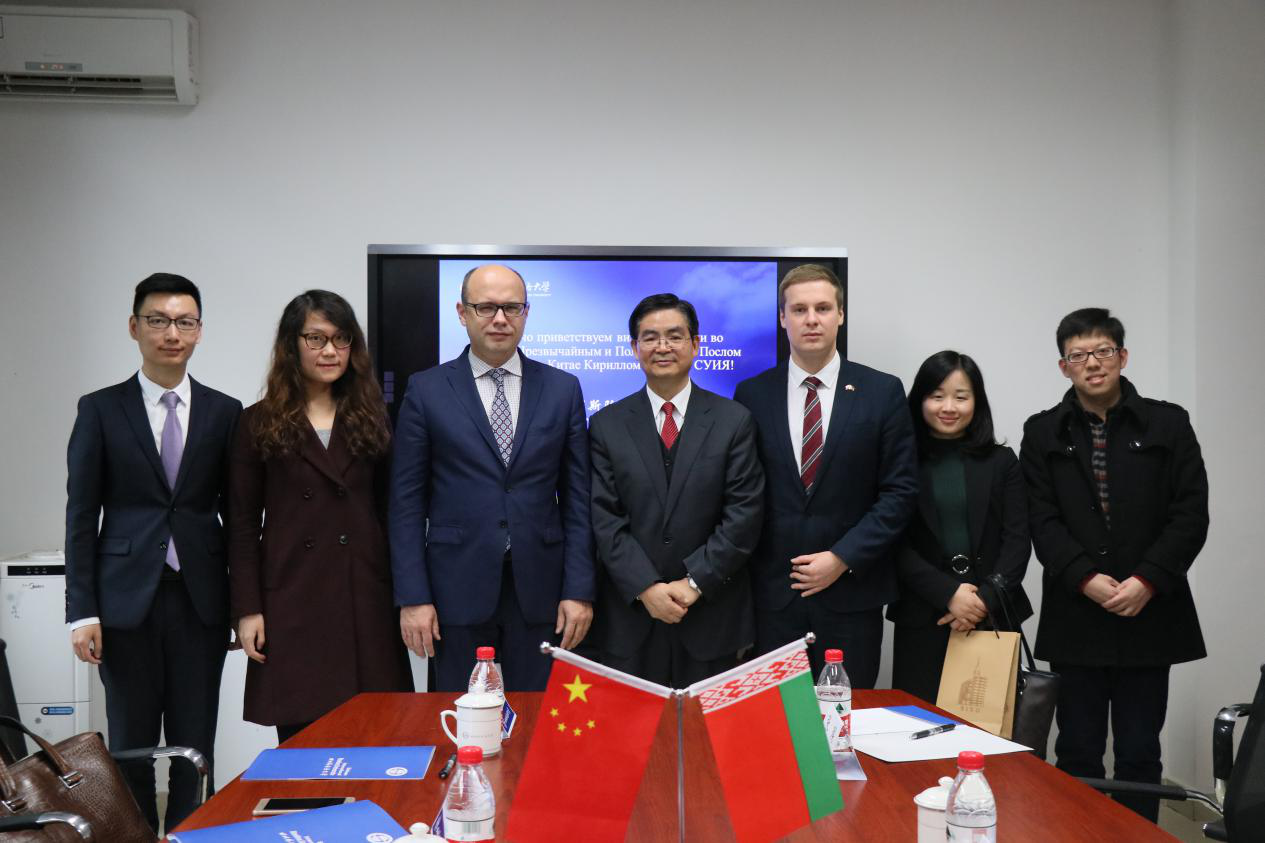 随后,双方在西区行政楼A410会议室进行会谈。会上,李克勇校长为鲁德大使介绍了我校历史沿革与发展现状,并表达了实现川外与白罗斯大学在学科建设、文化交流等方面展开校际合作的美好愿景。鲁德大使也在发言中表示,中国与白罗斯长期保持睦邻友好合作关系,白方一直高度关注并大力支持中方提出的“一带一路”倡议,并邀请李克勇校长参加将于明年1月在大连理工大学举行的“白中教育年”活动,进一步商讨双方合作事宜。此外,双方在会议中,就共同推动我校白罗斯语教学建设、成立白罗斯研究中心等未来合作方向达成了共识。
