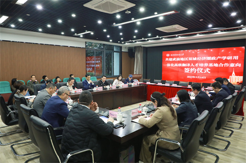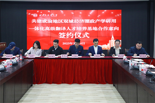 3月14日,成渝双城经济圈政产学研用一体化高级翻译人才培养基地在我校签约成立。