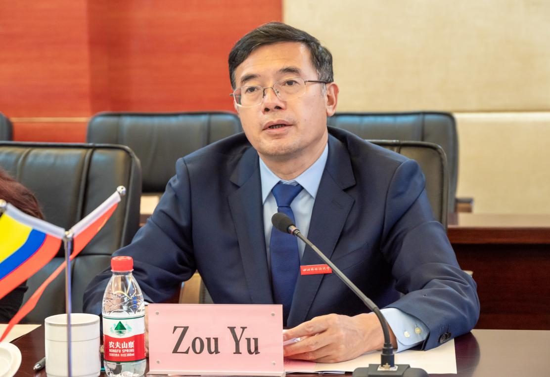 会谈中,邹渝对塞尔希奥·卡夫雷拉大使一行表示诚挚欢迎,并就办学历史、学科设置、国际交流及智库建设等方面详细介绍了川外办学情况。他特别指出川外重视学科间的发展与创新,学校联合新闻学、广播电视编导及西班牙语专业,成立国际影视产业学院暨西部影视译制中心,实现中国影片与西语影片的双向交流,用影片文化搭建中国与拉美的桥梁。他表示希望川外与哥伦比亚高校能够进行深层次的合作交流,推进西语专业人才培养。