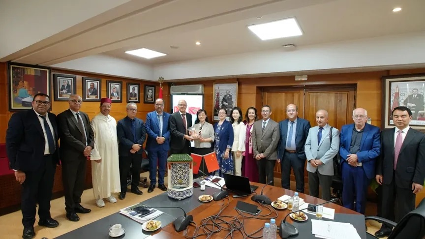 在伊本・图费勒大学,代表团与校长凯克布、负责国际交流的副校长艾克切尔、文学和人文学院、法学和政治学院院长及相关教师就中摩教育合作与文化传播展开深入探讨。双方就共建“中摩文化之家”展开深入讨论,该大学计划建设融中文教学、文化展览、短期培训、实践交流等功能为一体的中式文化中心。双方明确表示,将整合各自在语言教育、文化传播领域的资源优势,努力推进这一标志性项目落地,着力打造中摩文化交流互鉴的重要门户,为两校师生及当地民众搭建近距离感受多元文化魅力的实体平台。