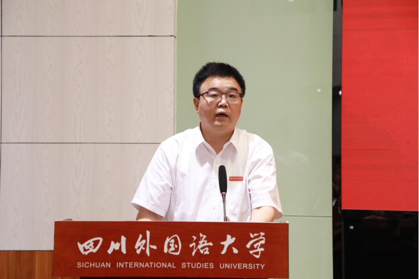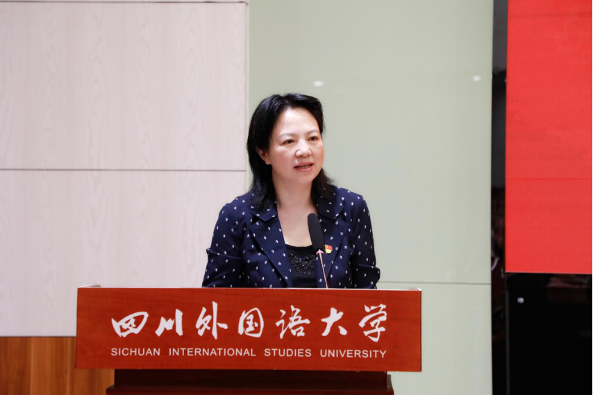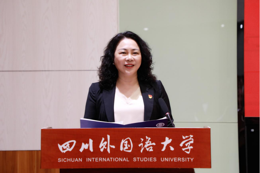 党委常委、副校长郑白玲同志宣读《四川外国语大学关于聘任董洪川等99位同志为嘉陵系列校级人才的通知》。