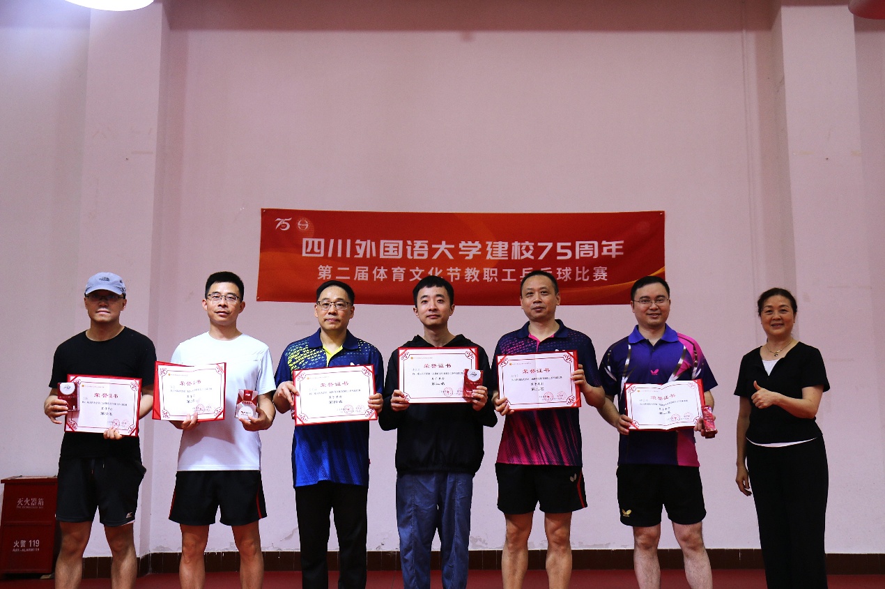 学校体育部主任杨焱,英语学院党总支书记、教职工乒乓球协会会长淡修安,中国语言文化学院院长、教职工乒乓球协会会长胡登全,校工会副主席周福兰,附属中学工会主席伍黎等参加了比赛开幕式和颁奖仪式。