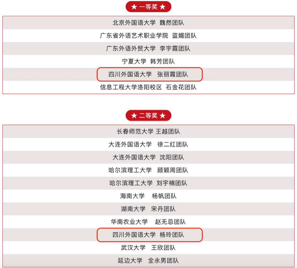 此次大赛共有106支参赛团队提交的参赛作品,通过教案设计、教师说课、教学展示三个环节的比拼,经过专家评审和网络投票,共评出一等奖6名,二等奖11名,三等奖22名,优秀奖32名。我校两个教学团队通过目标明确、逻辑清晰、新颖前卫的教学设计将语言文化、知识教学、技能培养与思政教育融会贯通,运用多元化教学手段和深入情境的教学方法,“润物细无声”地把立德树人的各项内容融入教学的每个环节中,充分展现了我校教师高度政治自觉性与高超的业务水平,获得了评委们的高度认可。