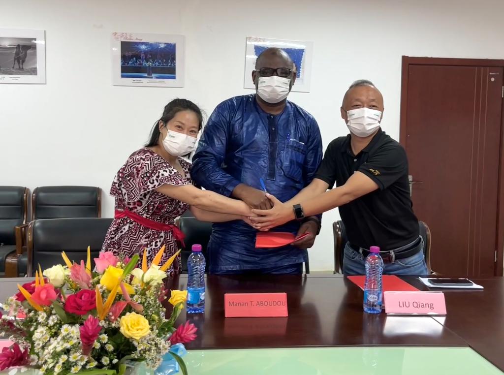 洛美当地时间8月23日上午10:00,洛美大学孔子学院与德诚控股集团非洲多哥分公司APSONIC MOTO TOGO SARLU在孔院会议室举行了共建“中文+职业培训”项目合作备忘录的签约仪式。洛美大学第二副校长贝芭教授、孔院中方院长朱玉珊和外方院长艾布多,德诚控股集团董事长张连先生、非洲区总经理刘强先生、多哥分公司经理何明军先生、董事长助理孙慧芝女士,部分教师及学生代表出席了签约仪式。