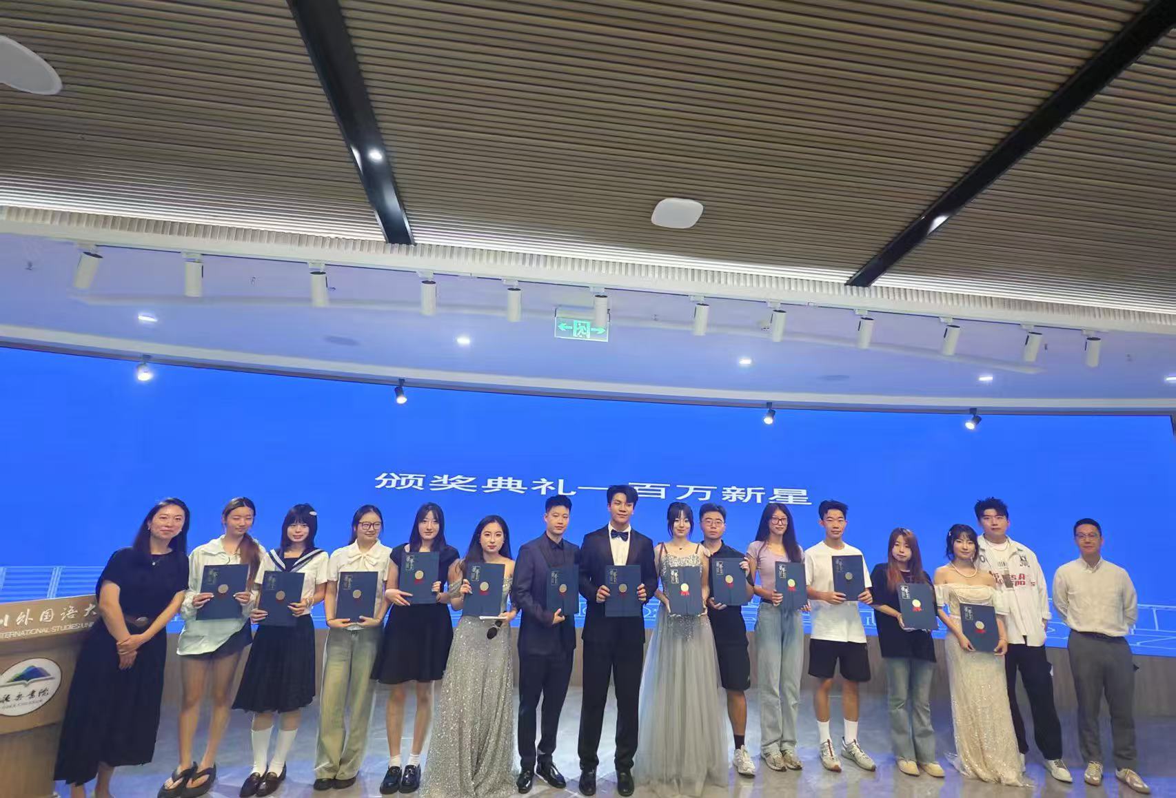 仪式由优秀学员代表史佳一主持。在创意成果汇报环节,学员们带着深度思考与丰硕成果登台,分享了在实践中跨越学科边界的探索与突破。他们运用全球化视野解构直播生态、探索跨文化传播新路径,展现了新一代数字文旅人才的创新思维与复合能力。携程集团资深培训导师樊润泉讲述了与学员们并肩作战的心路历程,充分肯定了大家的优异表现和无限潜力,他希望同学们能够在实践中触摸行业脉搏,在实战中提升专业素养。随后,校企双方领导共同为学员们颁发结业证书,为表现卓越的16名学员授予了“百万新星”荣誉证书,并授予旅游管理专业李丹老师“产教融合先锋导师”荣誉证书。