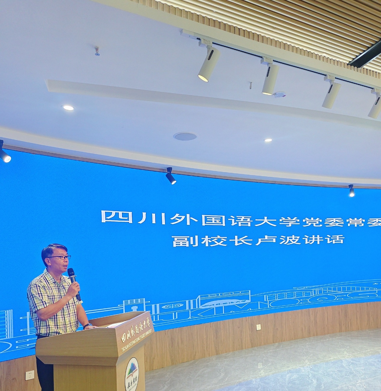 携程集团重庆公司常务副总经理邓琦在致辞中从行业视角解读了青训营的深远意义。他盛赞学员56天创下单场GMV破40万、累计GMV超200万的骄人战绩,位列全国高校榜首。邓总特别感谢我校前瞻性的“新文科”布局,称项目是校企共建“产教融合共生体”的典范。他表示携程将与川外深化合作,共同打造多语种海外直播青训营、共建重庆国际游客多语言服务平台、开展入境游多语言服务人才培训等新项目。