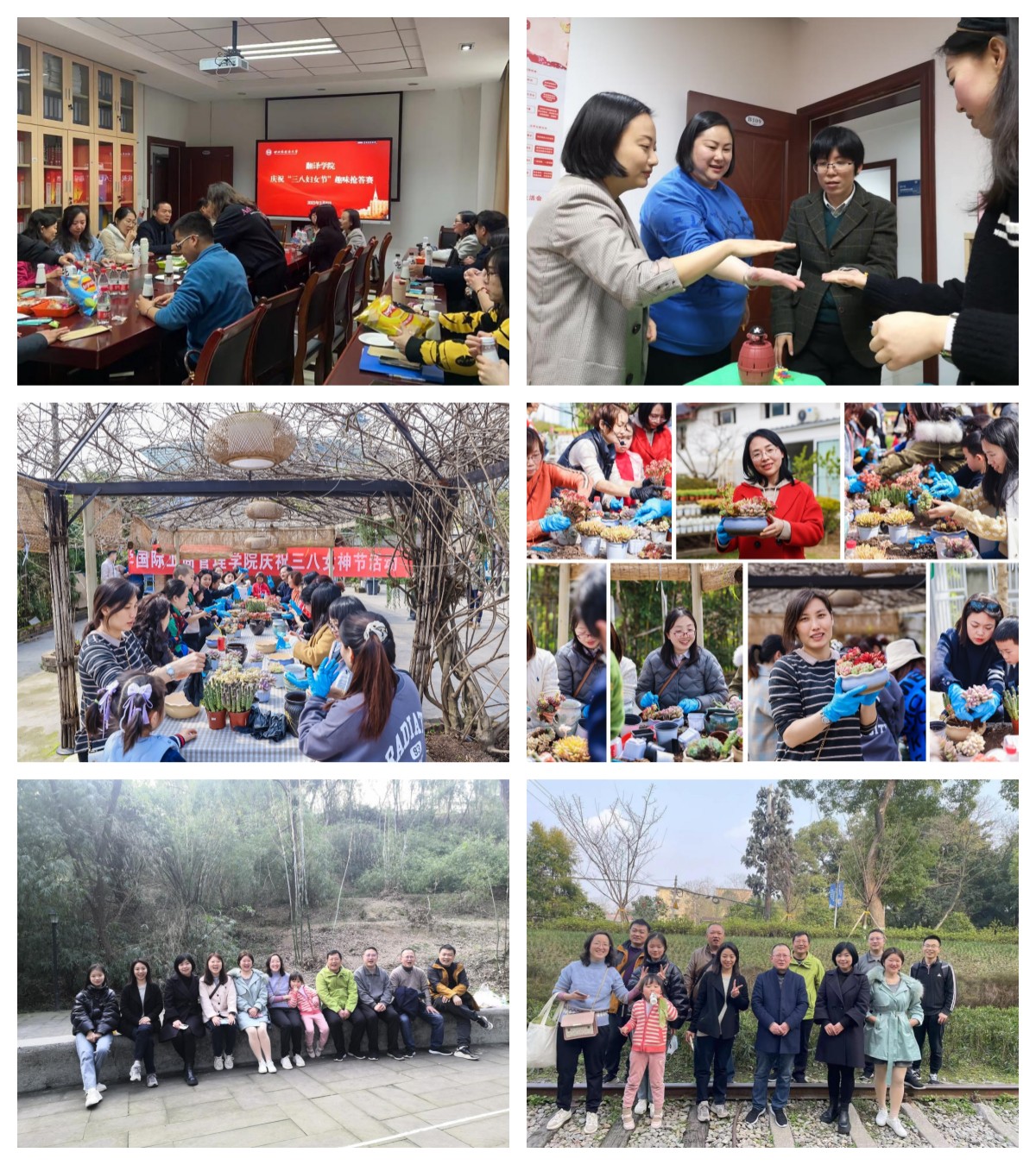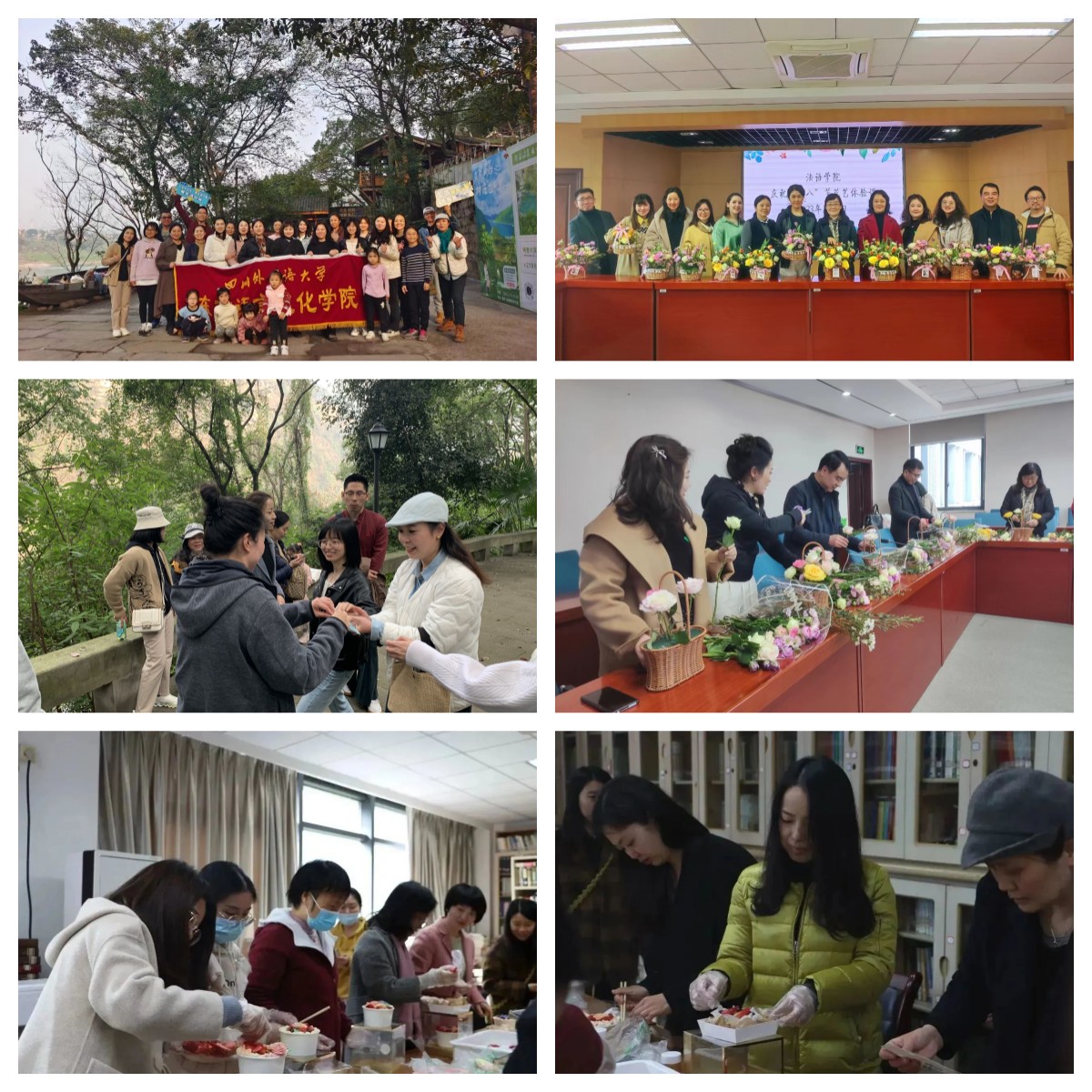 清风吹拂杨柳岸,新蕾已孕百花香,三月春风款款来,为庆祝妇女节,各个院系纷纷开展不同的活动,组织单位教职工看一场春花烂漫,赴一次春天的约,玩一次游戏汇聚力量,用一份蛋糕分享甜蜜,作一份手工显关怀,办一场影展发现美好。