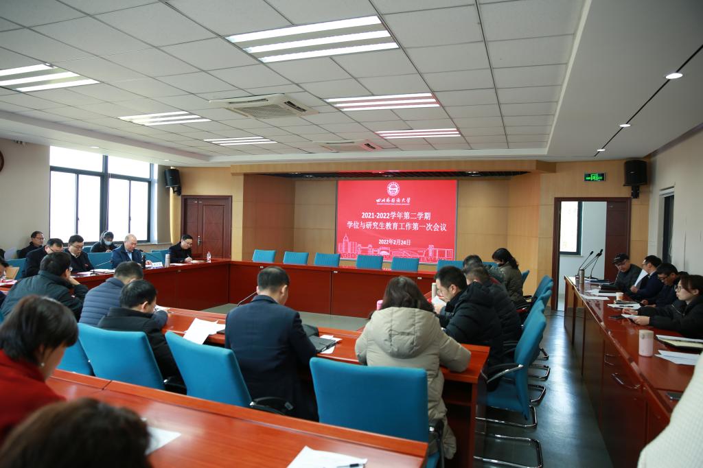 2月24日下午,2021-2022学年第二学期学位与研究生教育工作第一次会议在立德楼C517召开。校长董洪川、副校长王仁强、研究生教育督导成员、各学院主要负责人、分管研究生教学副院长及教学秘书、有关职能及教辅部门负责人参加会议。王仁强主持会议。