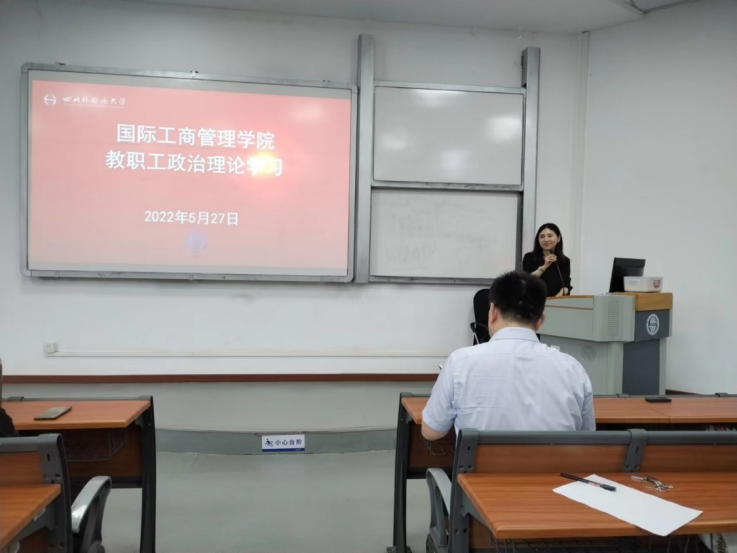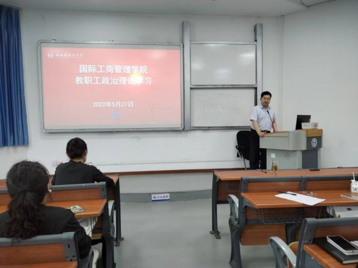 2022年5月27日,国际工商管理学院党总支于培英楼大一教室组织了5月份教职工政治理论学习,学院全体教职员工参加。党总支书记罗先明主持学习。