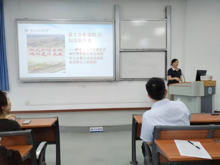 汪世珍教授领学了习近平总书记在庆祝中国国际贸易促进委员会建会70周年大会暨全球贸易投资促进峰会上的致辞并作交流发言。回顾中国贸促会70年发展历程,强调中国扩大高水平开放坚定决心。重振贸易投资,统筹疫情防控和经济发展,加强各国宏观经济政策协调,推动世界经济,早日走出危机阴影。习近平总书记强调,坚持人民至上,生命至上,积极开展疫苗研发、生产分配、国际合作,加强全球公共卫生治理,共筑多重抗疫防线,推动人类建设,推动建设人类卫生健康共同体。携起手来,坚持和平发展、合作共赢,共同解决当前世界经济以及国际贸易和投资面临的问题,一起走向更加美好的未来。汪世珍结合习近平总书记致辞中的四点建议谈到,当前世界之变、时代之变、历史之变正以前所未有的方式展开。第一,聚力战胜疫情。这为应对全球挑战指明方向,战胜疫情居于首位,凸显全球团结抗疫情重要性和紧迫性;第二,重振贸易投资。助力做大合作蛋糕,让发展成果更好惠及各国人民;第三,坚持创新驱动。创新是促进全球发展,重振贸易投资的关键力量;第四,完善全球治理。世纪疫情阴霾下,如何加强全球治理挑战考验各方智慧。合作共赢、能办大事,办好事、办长久之事。