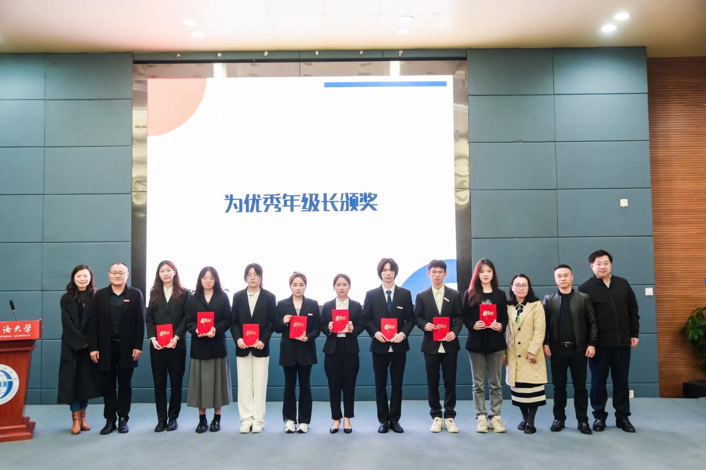 2023年11月24日,四川外国语大学2023-2024学年年级长大会在歌乐楼A栋报告厅顺利举行。学校党委常委、副校长卢波,相关职能部门负责人,学院党总支书记(副书记),2022-2023学年优秀年级长以及2023-2024学年全体年级长参加会议。会议由商务英语学院2021级张尹莹同学主持。