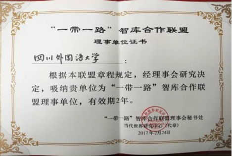 助力川外成为“一带一路”智库合作联盟理事单位