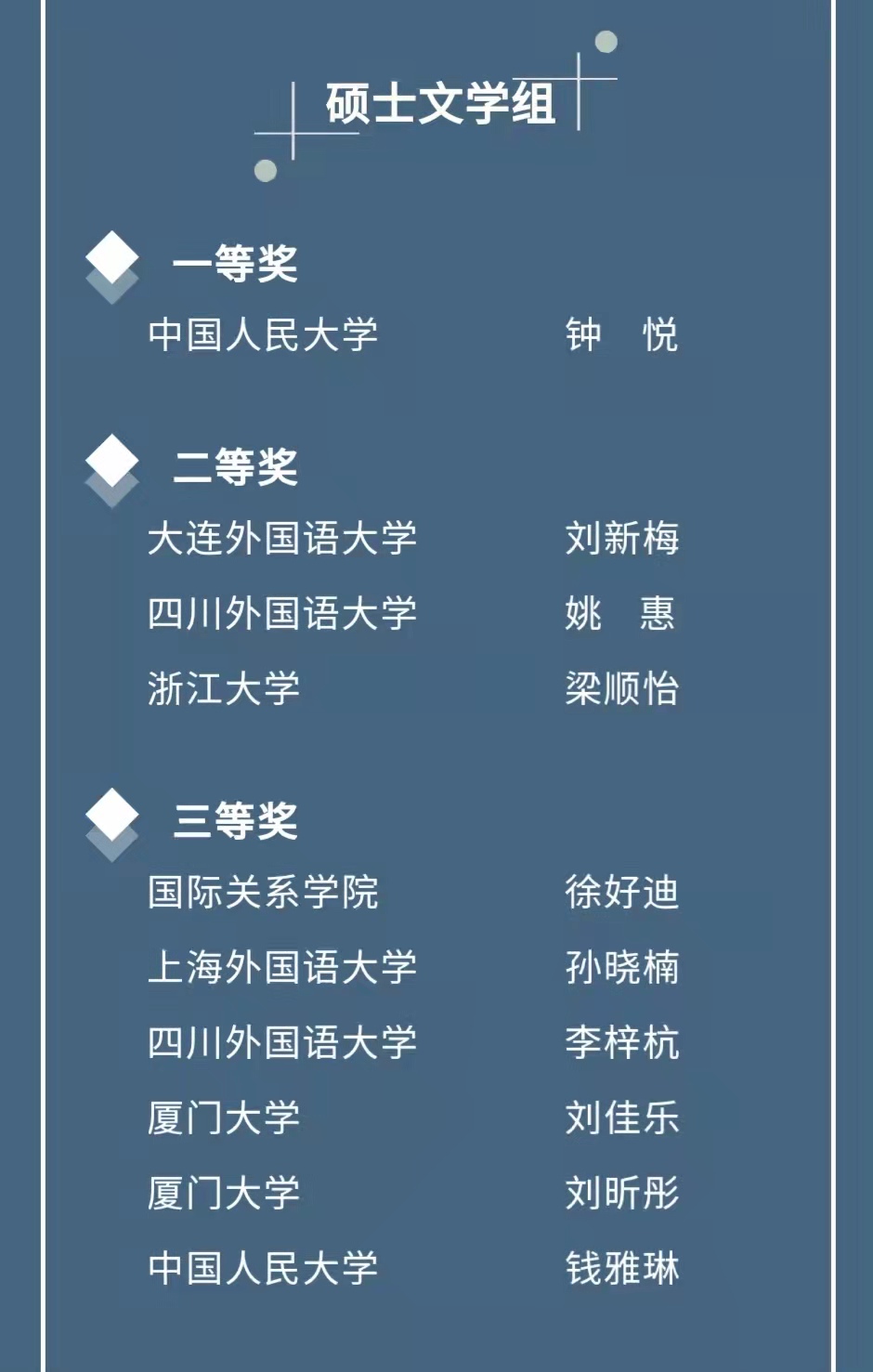 全国高校法语专业研究生论坛旨在为各高校法语专业硕博研究生提供广阔的交流平台,创立至今已有15年,成为了全国法语专业研究生的“年度学术盛会”。两位同学在论坛上的优秀表现体现了我校法语专业较高的研究生教学水平与学生较高的科研潜力。