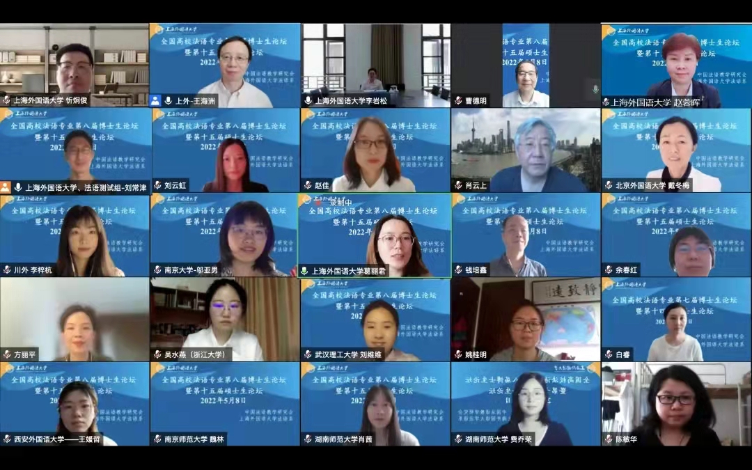 5月8日,由中国法语教学研究会和上海外国语大学法语系联合承办的全国高校法语专业第八届博士研究生论坛暨第十五届硕士生论坛在线上顺利召开。