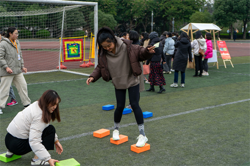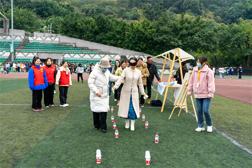 为丰富广大教职工文化生活,增强健康意识、展示教职工的精神风采,凝聚思想,增进交流。12月22日下午,由校工会、体育部、团委主办,青年志愿者协会 、大学生心理协会协办的“趣享运动 心向未来”教职工趣味运动会成功举办。此次运动会得到了各二级工会的积极响应以及广大教职工的踊跃参与,共有24支参赛队伍,1000余名教职工参与比赛。
