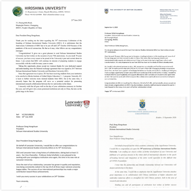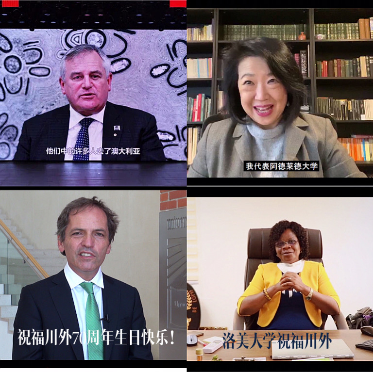 10月23-24日,四川外国语大学举办了庆祝建校70周年校庆活动。学校收到了来自21个国家和地区的50所高校、机构及总领馆的贺信和祝贺视频,15所外国驻渝蓉总领事馆、外籍友好人士、在校外籍师生到场共庆川外70华诞。