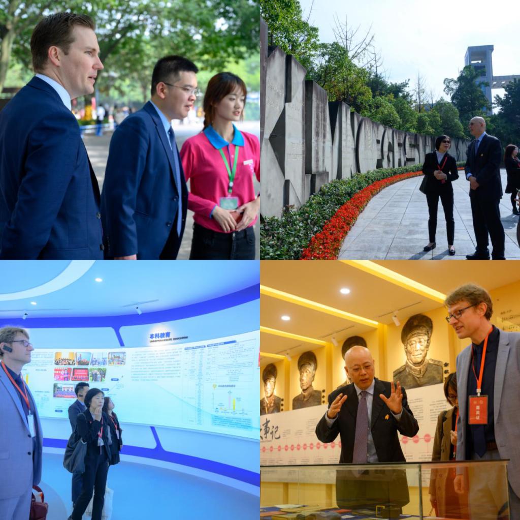白俄罗斯驻重庆领事(代理馆长)叶·德米特里(Dmitry Emelyanov)参加新时代中外人文交流助力“一带一路”建设高层论坛并发言。部分总领馆代表前往院系,与语言对象院系师生代表进行了友好交流。