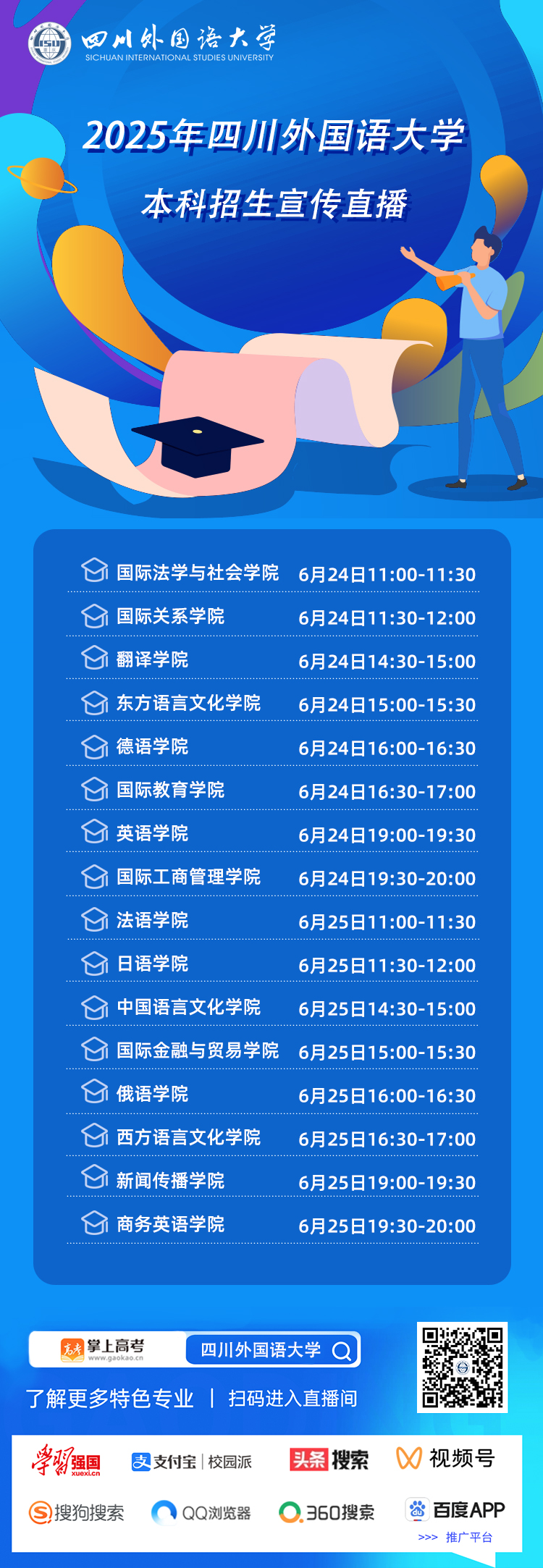 据悉,2025年各省份高考志愿填报期间,学校将选派优秀教师分赴20个省份开展48场次现场招生咨询会;并参与7个省份线上招生咨询会。近日,招生就业处将开展校园开放周及16个招生学院院长直播。通过“线上+线下”双线并行,多渠道、全方位做好招生宣传,吸引更多优质生源报考我校。