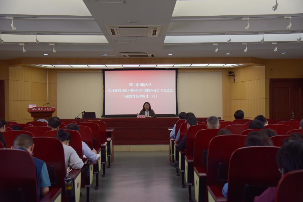 邹渝对扎实推进主题教育下一步安排作了强调:一是推动理论学习走深、走心、走实。要把握深刻内涵,当好学习贯彻习近平新时代中国特色社会主义思想的示范推动者。要分级分类抓好党员干部的理论学习,充分运用各种学习平台,统筹红色资源,上好现场课,抓好体验式学习。要以党的创新理论改造内心世界,当好学习贯彻习近平新时代中国特色社会主义思想的坚定信仰者。要多出实际成果,当好学习贯彻习近平新时代中国特色社会主义思想的自觉实践者,在推动学校事业高质量发展上展现更大作为。二是努力实现调查研究对标、对表、对焦。要坚持政治对标,充分认识调查研究工作的重大意义,切实把思想和行动统一到党中央关于大兴调查研究的重大决策部署上来,在新时代新征程上用好调查研究这个党的传家宝,奋力书写中国式现代化川外崭新篇章。要坚持调研对表,掌握运用调查研究工作的科学方法,使调查研究工作更好为科学决策服务、为加强党的领导服务、为高水平应用研究型外国语大学建设服务。要坚持补短对焦,切实以调查研究推动学校事业高质量发展,把调研成果转化为破解难题的实招、硬招,把一个个问题清单转变为一项项有川外辨识度的成果清单,不断推进学校治理体系和治理能力现代化,助推学校高质量发展迈上新的台阶。三是切实为师生解忧、解难、解盼。要注重为育人工作纾困解难。大力营造良好教学科研环境,“一学科一策”或“一专业一策”帮助解决现实痛点,把堵点、难点变成支点、亮点。要注重回应群众急难愁盼。健全为师生办实事长效机制,对普遍关切的问题及时开题作答、解疑释惑、回应诉求,始终同师生保持血肉联系。