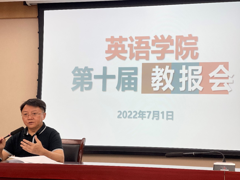 2022年7月1日下午3点到5点,英语学院在西区立德楼A609会议室举办了第十届教报会。英语学院全体教职员工参加了会议。