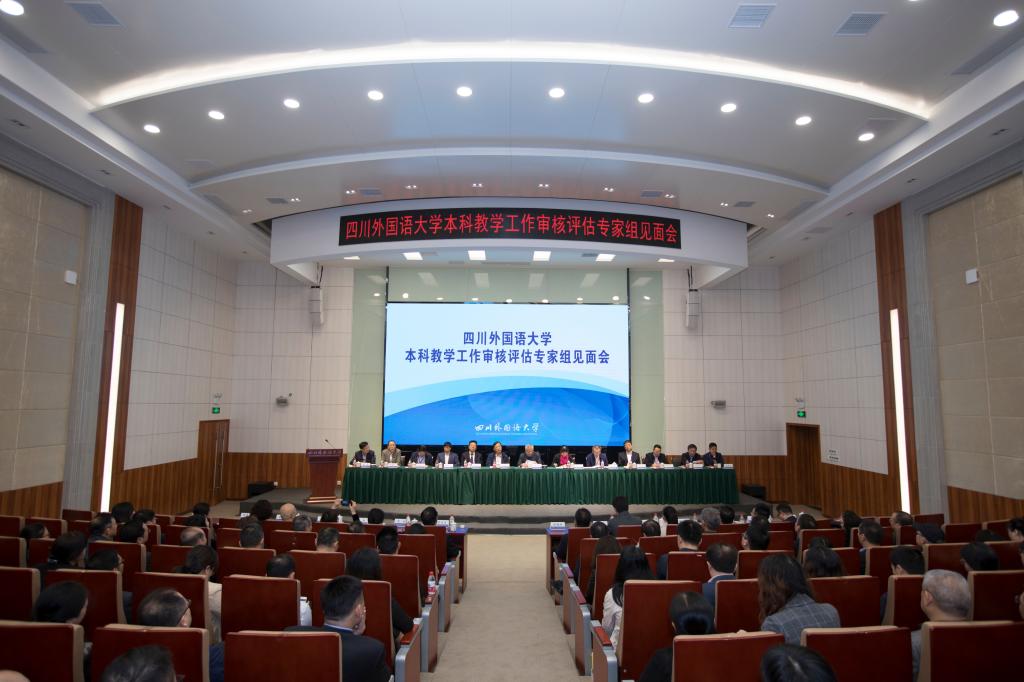 10月15日上午8点,四川外国语大学本科教学工作审核评估专家组见面会在学校宏文楼国际报告厅举行。审核评估专家组组长、北京外国语大学原党委书记韩震,专家组成员:贵州师范大学校长助理、厦门大学高教质评所所长史秋衡,湖南大学外国语与国际教育学院院长刘正光,对外经济贸易大学国际语言服务与管理研究所所长王立非,复旦大学教授马秋武,西南政法大学原党委副书记刘俊,重庆三峡学院副校长谭明术,长江师范学院副校长向小川,重庆大学出版社社长易树平,重庆亚信健康产业集团有限公司党委书记田培忠,蓝鸽集团有限公司董事长、总裁张新华,以及专家组项目主管、重庆市教育评估院高等教育评估所助理研究员黄敏,秘书、四川美术学院教学质量管理中心主任简纪和重庆市教育评估院高等教育评估所助理研究员刘序,重庆市教委高教处副处长吴岚,重庆市教育评估院副书记、副院长张东,学校全体校领导,职能部门负责人及教学单位党政负责人,教授代表参加见面会。