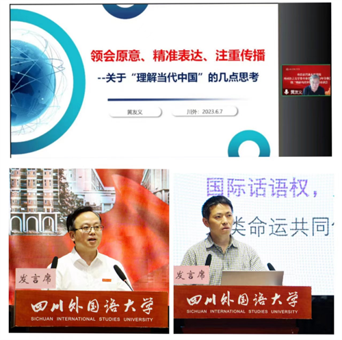 会议第三阶段为“理解当代中国”课程培训环节,由四川外国语大学教务处长刘玉梅主持。中国翻译协会常务副会长、中国翻译研究院副院长黄友义,《理解当代中国 读写教程》副主编北京外国语大学夏登山分别以《领会原意、精准表达、注重传播——关于“理解当代中国”的几点思考》《<理解当代中国:英语读写教程>理念与实践》为题作报告,以丰富的翻译案例和教学范例,阐释了对“理解当代中国”主题及内容的理解,分享了相关教学经验。四川外国语大学副校长祝朝伟介绍了以“1335全链条覆盖”模式推进“理解当代中国”课程建设的院校特色探索。
